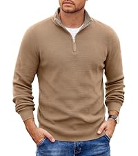 COOFANDY Mens Quarter Zip Pullover Knit Casual Mock Neck Long Sleeve Sweater