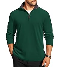 COOFANDY Mens Quarter Zip Pullover Slim Fit Lightweight Sweater Casual Mock Neck Knit Polo Sweater