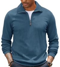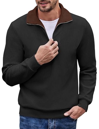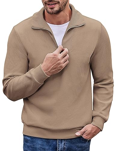 COOFANDY Men's Quarter Zip Up Pullover Mock Neck Long Sleeve Sweater Casual Corduroy Polo Sweatshirt