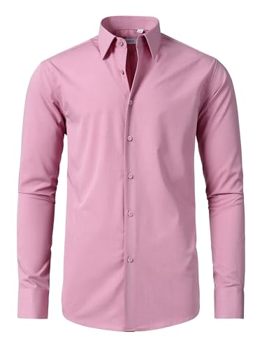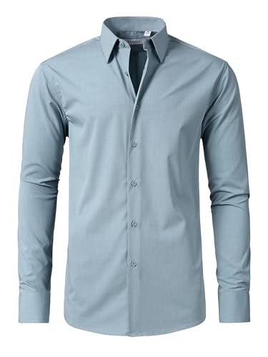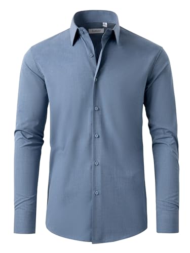 FAHIZO Men's Dress Shirt Casual Regular Fit Stretch Soild Long Sleeve Button Up Shirts