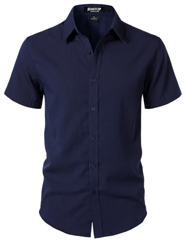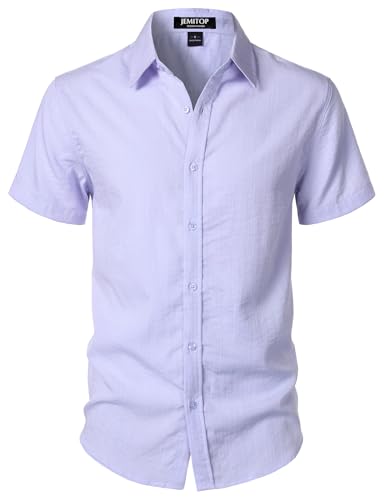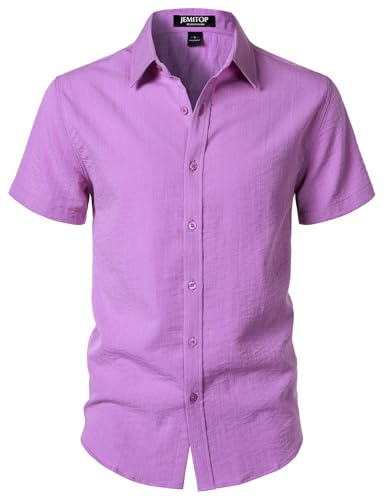 Men's Stretch Textured Short Sleeve Button Down Shirts Summer Casual Beach Wedding Vacation Shirt