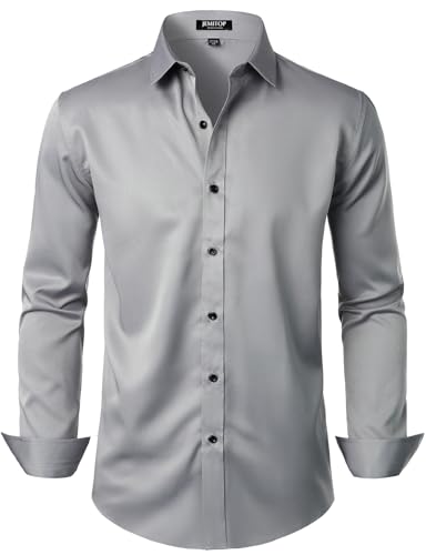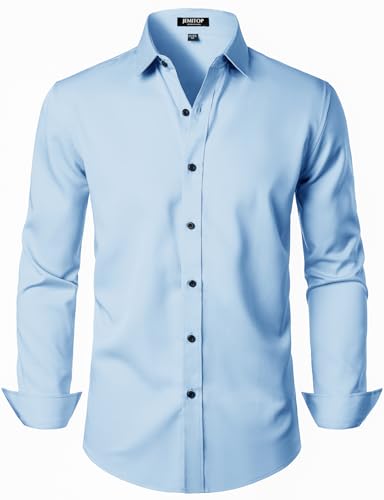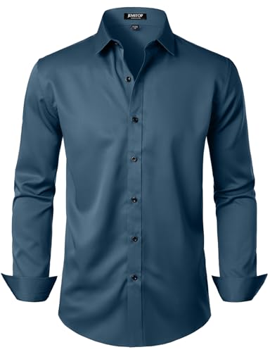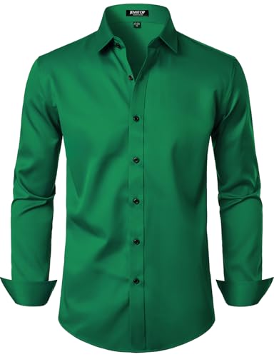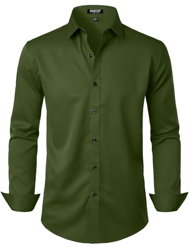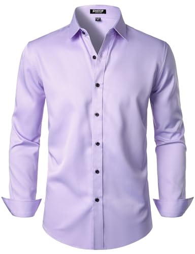 Men's Stretch Wrinkle Free Dress Shirts Formal Prom Wedding Long Sleeve Button Down Shirts