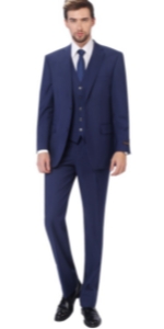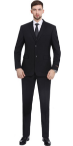 - One Button Closure, Single Breasted, Notch Lapel, Side Vents, Regular Fit; Vests: Four Button, V-Neck, Smooth back and adjustable back tie; Pants: Flat Front, Zippered fly, Button and adjustable waist tab.