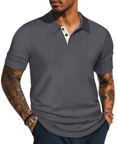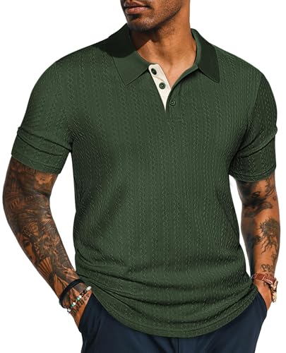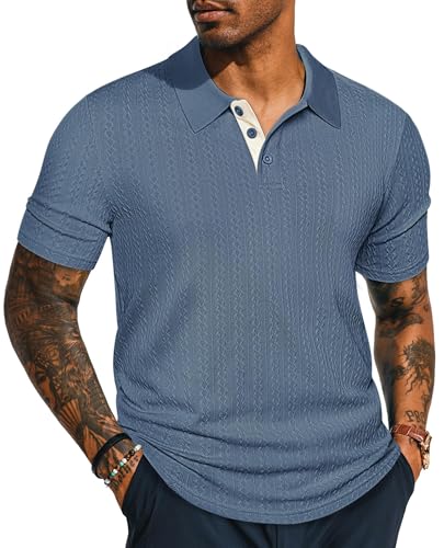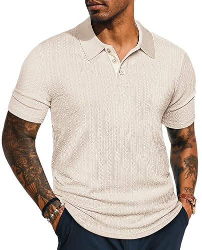 PJ PAUL JONES Mens Polo Shirts Short Sleeve Textured Polo T Shirt Summer Casual Knitted Golf Shirt
