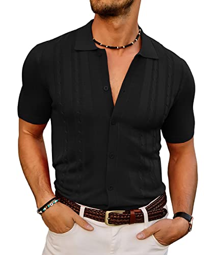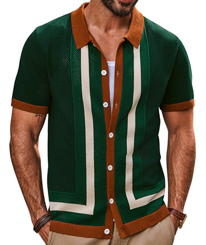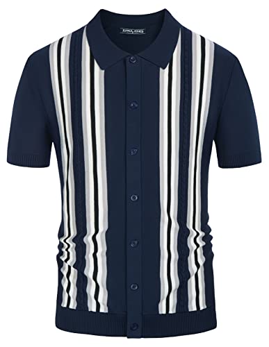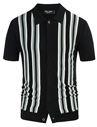 PJ PAUL JONES Mens Polo Shirts Vintage Striped Button Down Knitted Golf Shirts
