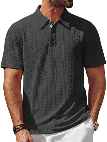 Mens Polo Shirts Short Sleeve Casual Stylish Textured Stretchy Polo Golf Shirt